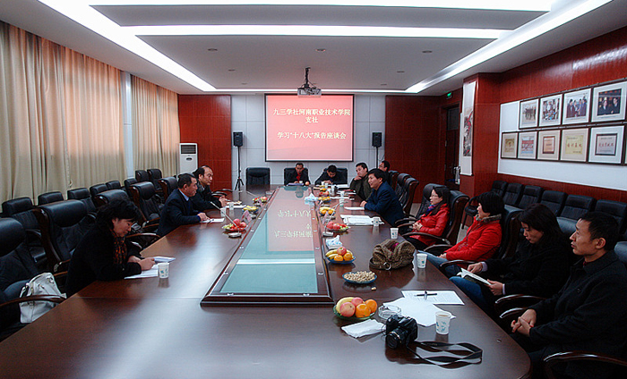 11月12日下午,九三学社河南农业大学委员会河南职业技术学院支社学习十八大报告座谈会在行政楼A303会议室召开。九三学社河南省委常委、河南农业大学委员会主委文才艺,九三学社河南农业大学委员会副主委艾志录应邀出席会议。我院党委宣传部部长孙留欣也应邀参加了会议。会议由九三学社河南农业大学委员会副主委、学院支社主委胡锡凤主持。