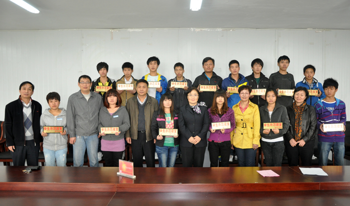 最后,肖珑副院长和该系领导为梁杰等7名示范岗教师和15个学生示范寝室进行了授牌并合影留念。