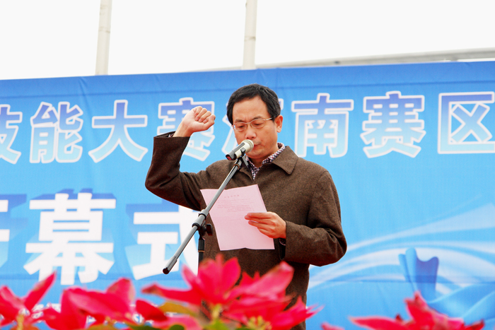 开幕仪式上,王爱群院长首先代表学院向各位领导、各位嘉宾、评委和参赛选手的到来表示热烈欢迎。他指出,我院在省委省政府的正确领导和上级有关部门的大力支持下,学院实现了跨越式发展,已成为国家级示范高职院校,是河南省在各类技能大赛中获奖最多的高校,是首批50所全国毕业生就业典型经验高校。学院在做好高职教育的同时,主动融入经济建设主战场,以全民技能振兴工程建设项目为突破口,开展大规模职业技能培训和创业引导培训,取得了良好的社会效果,并为社会输送了十几万操作能力强、技能水平高的技能型人才。