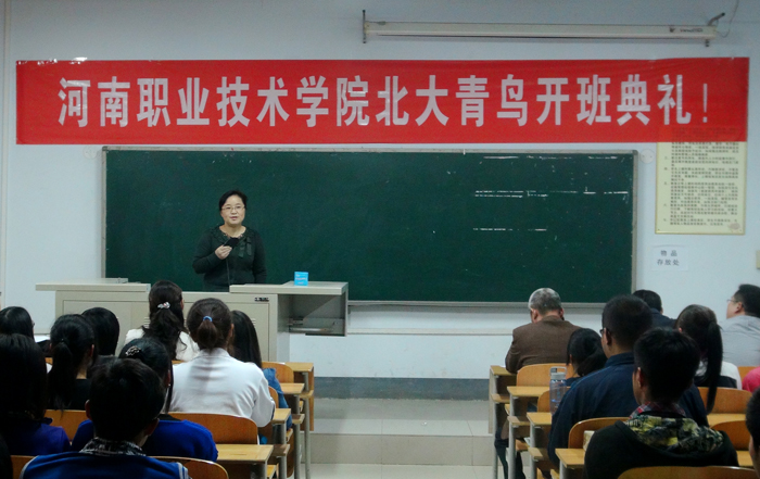 典礼上,肖珑副院长代表学院致辞,她指出,北大青鸟班是我院与北京青鸟信息技术教育发展有限公司合作办学的重要成果,这项校企合作有利于我院“双师”型教师队伍素质和专业教学质量的提高、更有利于激发学生学习的自主性和创新性以及专业人才培养目标的实现,提升专业技能,增强就业竞争力。北大青鸟河南院校服务中心主任陈新峰对新生进行了学法指导,并希望同学们能够认真学习专业知识,尽快使自己成为合格的IT技能人才。