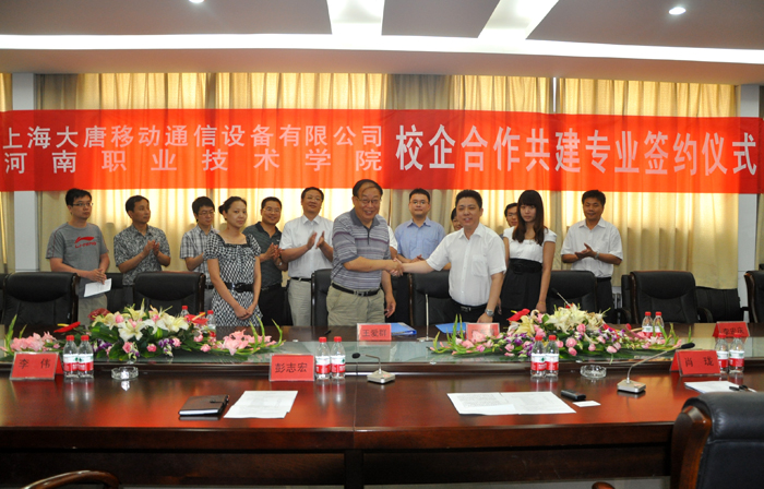 6月18日上午,我院电气工程系与大唐移动(上海)通信设备有限公司举行了校企合作共建专业签订仪式。院长王爱群,副院长彭志宏、肖珑出席仪式,大唐移动通信设备公司副总经理张东晨、华中区总经理霍璇、客户服务中心副总经理李宏庆及合作办学处、电气工程系领导参加了签约仪式。
