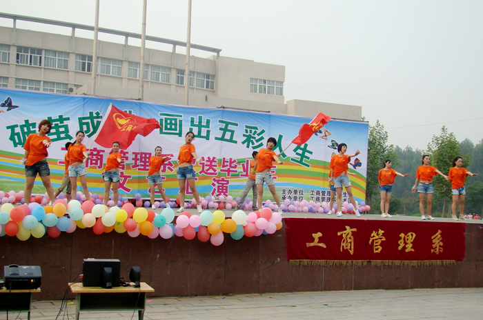 文艺汇演在舞蹈《五星红旗》中拉开帷幕。节目精彩纷呈,激情的歌曲演唱、幽默的小品、欢快的舞蹈、传统的戏曲、动情的诗朗诵和独具特色的模特礼仪等13个节目,将文艺汇演一次次推向高潮,现场观众的欢笑声、掌声此起彼伏。一首《放心去飞》,寄托了该系3000多名师生对毕业生的深切期望,也把在场的观众带进了对往昔的追忆和对未来的憧憬中,道不尽的离别情,诉不完的留恋意,师恩难忘,情意难舍。相信那些即将离开母校的毕业生将会带着满满的大学回忆在新的征程上开创别样的辉煌!