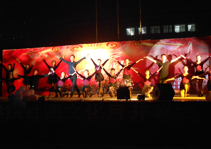 晚会在激情奔放的踢踏舞表演中正式拉开帷幕。武术协会带来的展示中国传统文化的武术表演,院艺术团的梨园戏曲串烧,书法协会充满古典神韵的书法表演,校园之声广播站激情昂扬的诗歌朗诵等精彩节目无不将晚会一次次推向高潮。一首和谐的《相亲相爱的一家人》大合唱表演表达了同学们对幸福美好生活的热爱,晚会圆满落下帷幕。