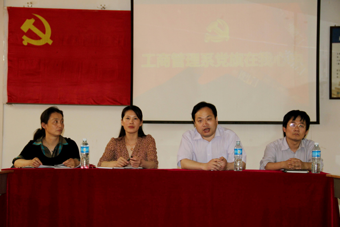 5月3日下午,工商管理系“党旗在我心中”系列活动启动仪式在商务礼仪实训室隆重举行。该系28位党员教师参加了启动仪式,副院长占江出席并作重要讲话。仪式由该系党总支副书记杜馨主持。