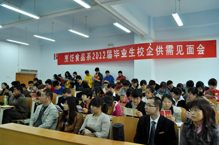为进一步促进毕业生就业工作,4月13日,烹饪食品系与招生就业处联合举办了毕业生就业专场招聘会。北京快客利(中国)控股集团有限公司、河南花园酒店管理咨询有限公司、郑州食珍堂酒店管理有限公司、郑州心愿食品厂、上海怡乡春竹餐饮管理有限公司和郑州大学后勤管理集团等11家省内外知名企业前来招聘,该系50余名毕业生参加应聘。