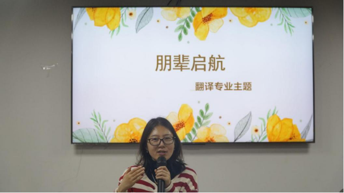 2023年4月3日晚,“朋辈启航”翻译专业主题讲座在逸夫楼A2014举行,本次主题活动邀请2019级和2020级的学长学姐分享交流了专业四级和CATTI的备考经验;本次讲座和交流会由翻译系常言老师主持。