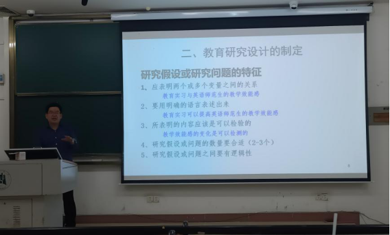 4月19日和5月10日,外国语学院2021级英语师范专业开展了以“教育研究设计与调查”为主题的研习讲座,讲座由梅勇老师担任主讲人。