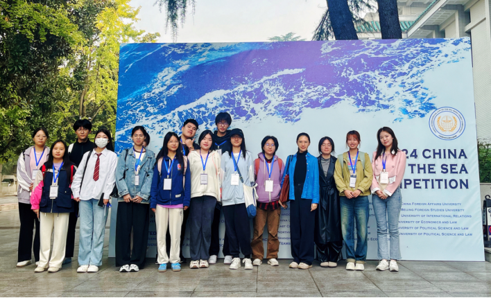 2024年11月3日,英语系2204班的学生在聂向明老师的带领下赴武汉大学,旁听国际海洋法模拟法庭比赛。全国海洋法模拟法庭比赛聚焦于海洋法领域的前沿问题,此次活动旨在加强学生对国际法基础知识和的理解,激发其参与国际事务和国际治理的兴趣。