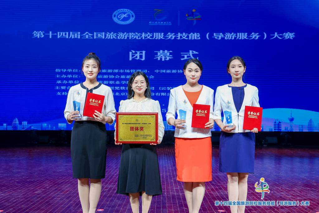 5月24日至26日,第十四届全国旅游院校服务技能(导游服务)大赛在郑州举行。河南职业技术学院文化旅游学院学生崔灿灿和周雅琪双双获普通话导游服务赛项一等奖,薛晶晶和郭闪闪分获英语导游服务赛项一等奖和二等奖;学校总成绩位居高等院校组(含本专科)第5位,获大赛团体奖,这也刷新了学校历届比赛最好成绩,实现新突破。
