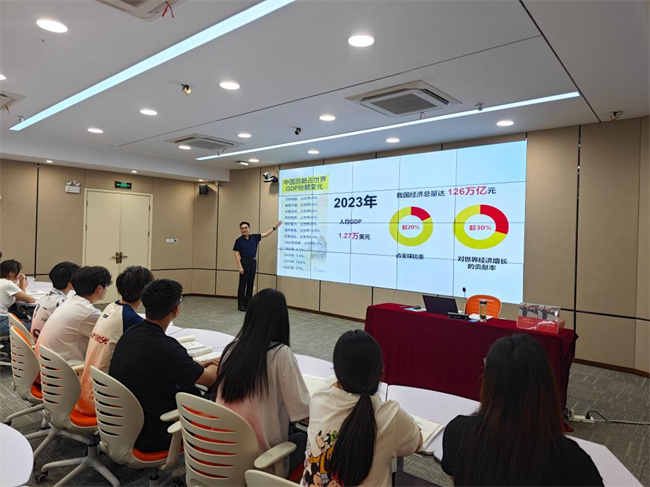 本网讯 6月27日上午,河南职业技术学院党委书记厉励以“争做新时代有为青年 为民族复兴挺膺担当”为题,为现代信息技术学院移动应用开发231班同学,讲了一堂政治上有高度、理论上有深度、情感上有温度、知识上有广度的思政课。