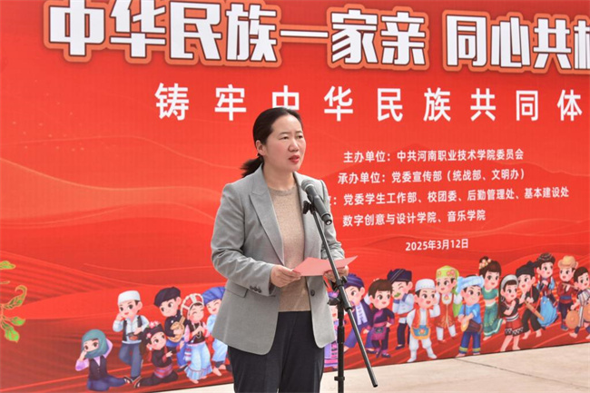 3月12日是全国第47个植树节,当天,河南职业技术学院举行了“中华民族一家亲,同心共植石榴树”活动。校党委书记厉励出席活动,为学生讲授铸牢中华民族共同体意识思政课,并为“民族团结石榴林”揭牌。校党委委员、副校长任枫轩,党政办公室、党委宣传部、党委学生工作部、校团委、后勤管理处、基本建设处和各二级学院相关负责人,以及120余名各民族师生代表参加活动。校党委副书记、工会主席田华主持活动。