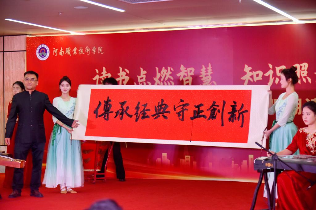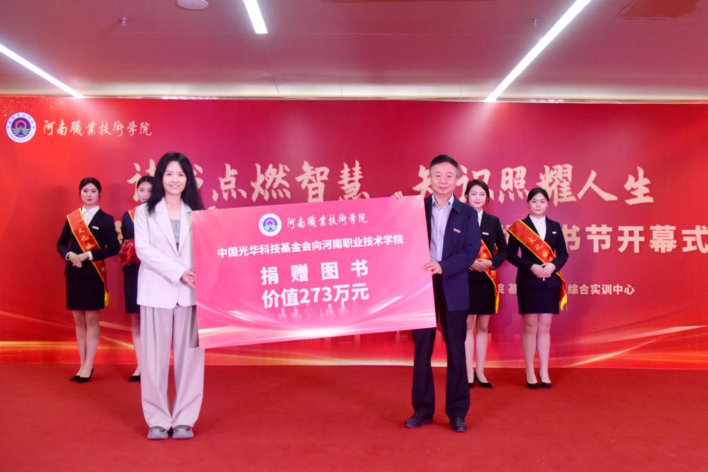 夏新颜在致辞中对中国光华科技基金会向学校捐赠图书表示感谢,并介绍了学校全民阅读工作的传承与发展。她指出,近年来,学校坚持将阅读作为立德树人、培根铸魂、启智增慧的重要途径,深化“以书育人、以文化人”思政模式,探索“党建+文化浸润”阅读推广路径,重塑书香河职育人新生态。通过绵绵久久的用功、持续不断的发力,讲政治、出精品,思想旗帜更加鲜亮;强活动、亮品牌,河职特色更加彰显;抓普惠、建平台,真正惠及广大师生;拓空间、创形态,全力满足阅读需求。如今的“书香河职”,正以“四高四争先”战略为引领,在中原大地书写以文化人、以文兴教的时代答卷。