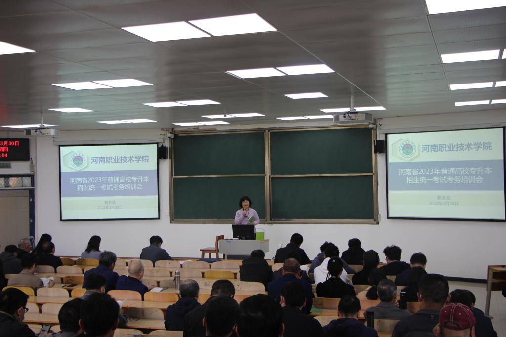 3月30日下午,学校召开2023年专升本考试考务培训会。副校长肖珑出席会议并讲话,外派监考员及考务工作人员共360余人参会。