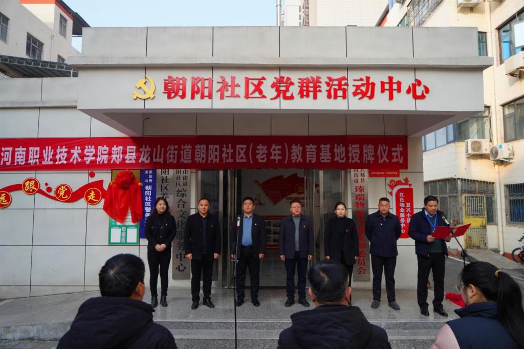 1月12日上午,学校平顶山郏县龙山街道朝阳社区(老年)教育基地揭牌仪式暨培训活动,在郏县朝阳社区群众活动中心举办。学校音乐学院、继续教育与培训中心负责人,郏县龙山街道党工委和朝阳社区相关负责人参加上述活动。