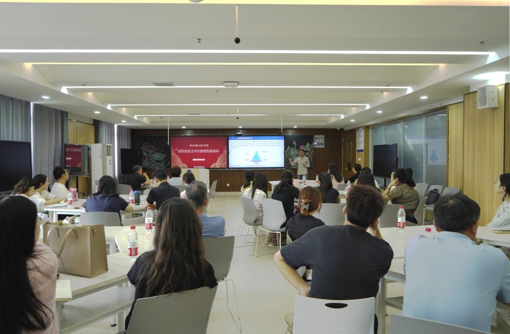 王华杰教授受邀作题为《基于一中心四平台的国家双高专业群建设》报告,介绍了上海工艺美院“党建+专业群建设”特色模式及“一中心、四平台”专业群建设思路与做法,分享了国家级样板支部建设经验,系统阐述了“党建和专业建设相融合、党建和人才培养相结合、党建和统战相结合”,“创新工作形式、创新工作内容、创新评价机制”和“发展长远化、参与普遍化、教研常态化、规划系统化、提升个性化、评价科学化”为内涵的支部建设336模式,并对数创学院党建项目研究申报提出宝贵建议。