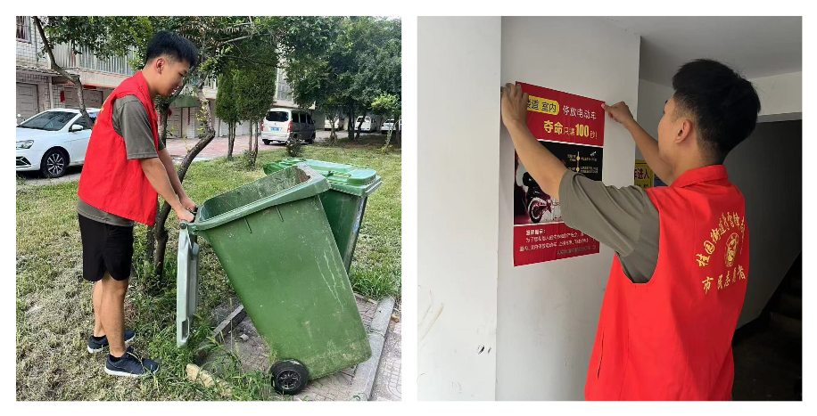 侯飞宇,机电234学生,暑假期间积极投身于社区志愿服务活动,进行社区消防安全宣讲,认真张贴防溺水告知书,还进行了社区垃圾清理等工作。