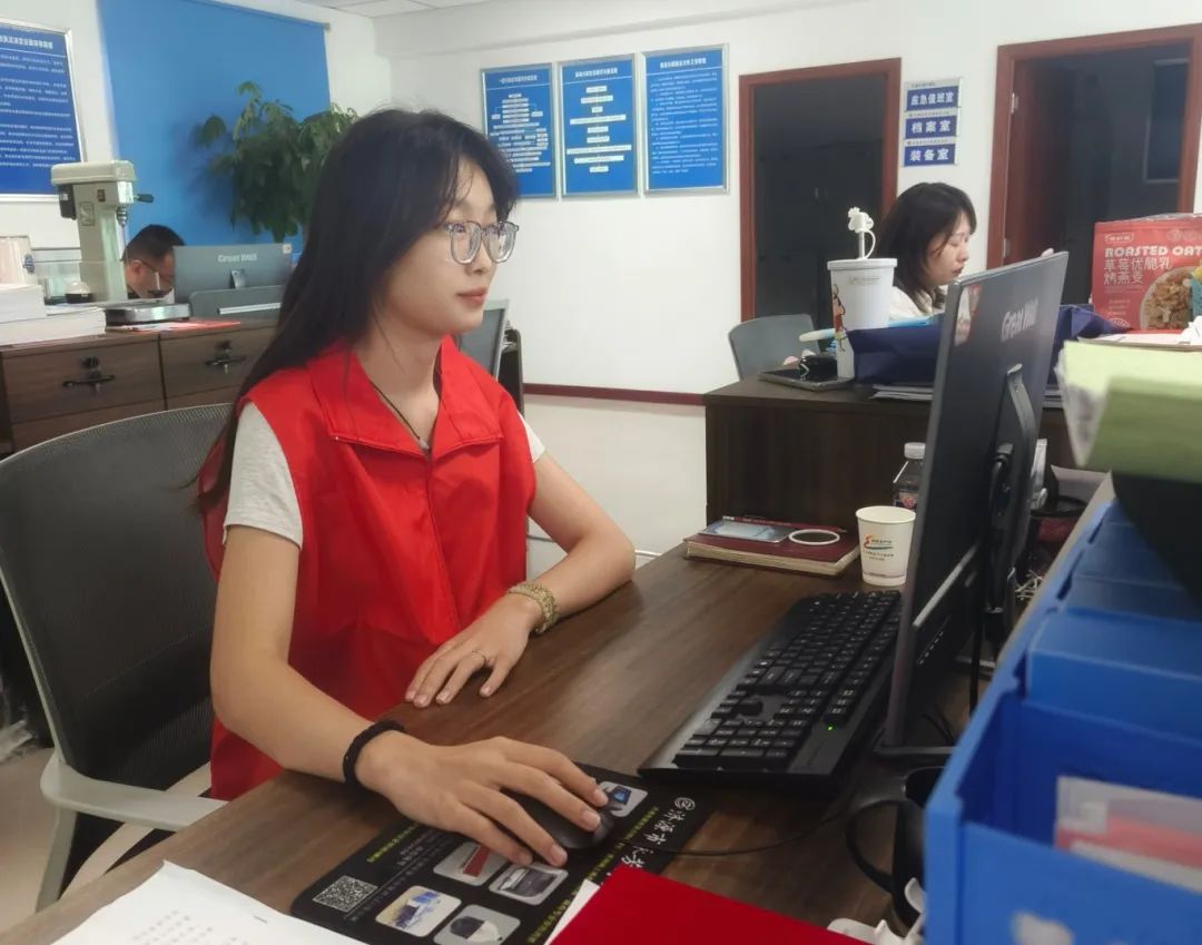 杨晶晶,商英231班学生,暑假期间,积极参加河南省济源市2024年⼤学⽣暑期“返家乡”社会实践活动,在北海办事处综合执法⼤队进⾏志愿服务。在岗期间,她承担防汛预警救灾、检查各单位消防安全管理、⻝品安全督导等⼯作,切身体会到了基层领导全⼼全意为⼈⺠服务的⼯作态度与热情,更看到了⼈⺠对基层、社会、国家充满希望。