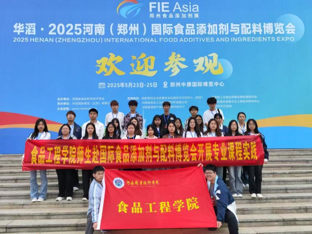 5月23日,学校食品工程学院30名师生赴2025河南(郑州)国际食品添加剂与配料博览会开展专业实践活动,切实为师生提供了接触行业前沿科技、衔接课堂理论与实践的平台。