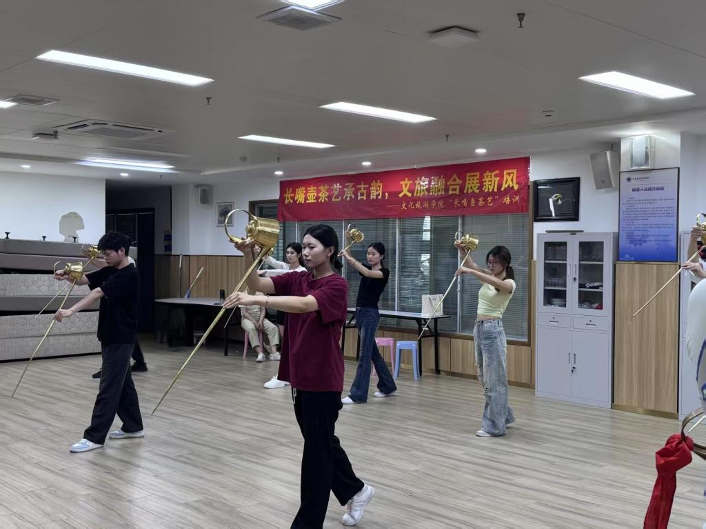 近日,学校文化旅游学院特邀四川非物质文化遗产“长嘴壶茶艺”传承人吕斌老师来校,为学院师生开展为期四天的专题培训,进一步提升旅游管理专业群教师和学生的专业技能与文化素养。