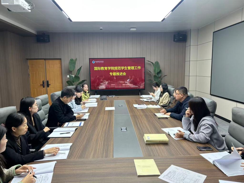 10月14日上午,学校国际教育学院组织召开学生管理工作规范化专题推进会,旨在进一步夯实学生工作基础,提升管理服务效能,营造安全有序、积极向上的育人环境。党支部书记解鹏程、副书记郭丽及全体辅导员参加会议。