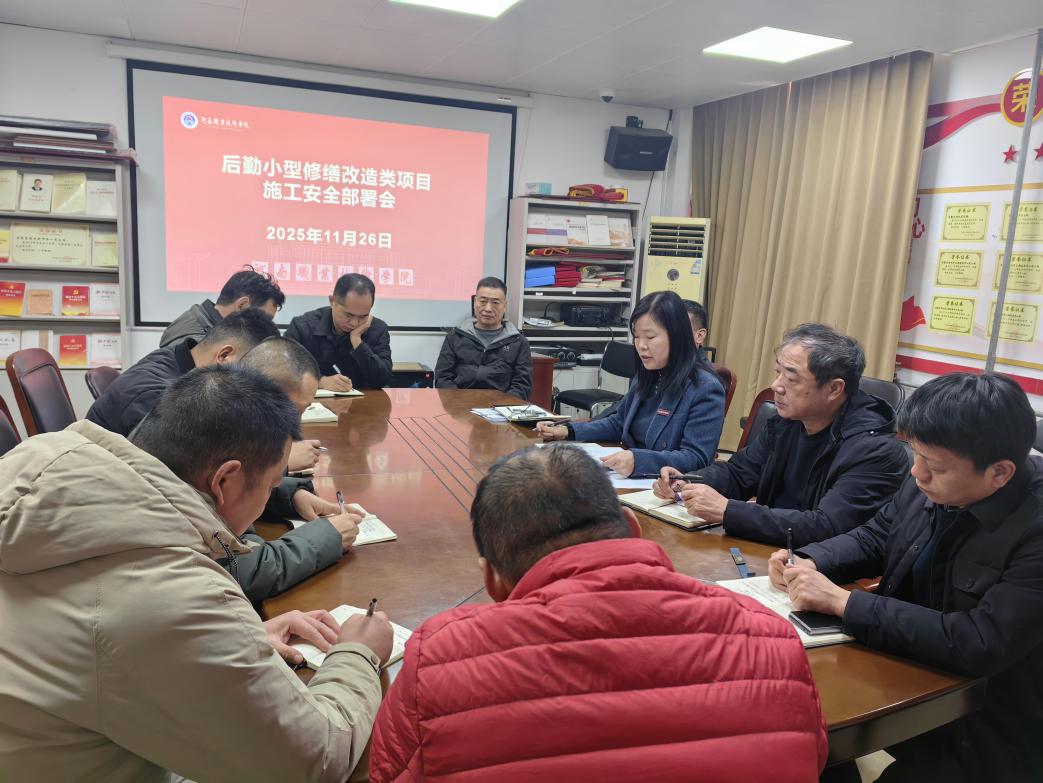 11月26日上午,学校后勤管理处组织召开后勤小型修缮改造类项目施工安全部署会,进一步压实安全责任,筑牢施工安全防线。后勤管理处负责人、各服务中心主任及相关施工单位、监理单位负责人参加会议。