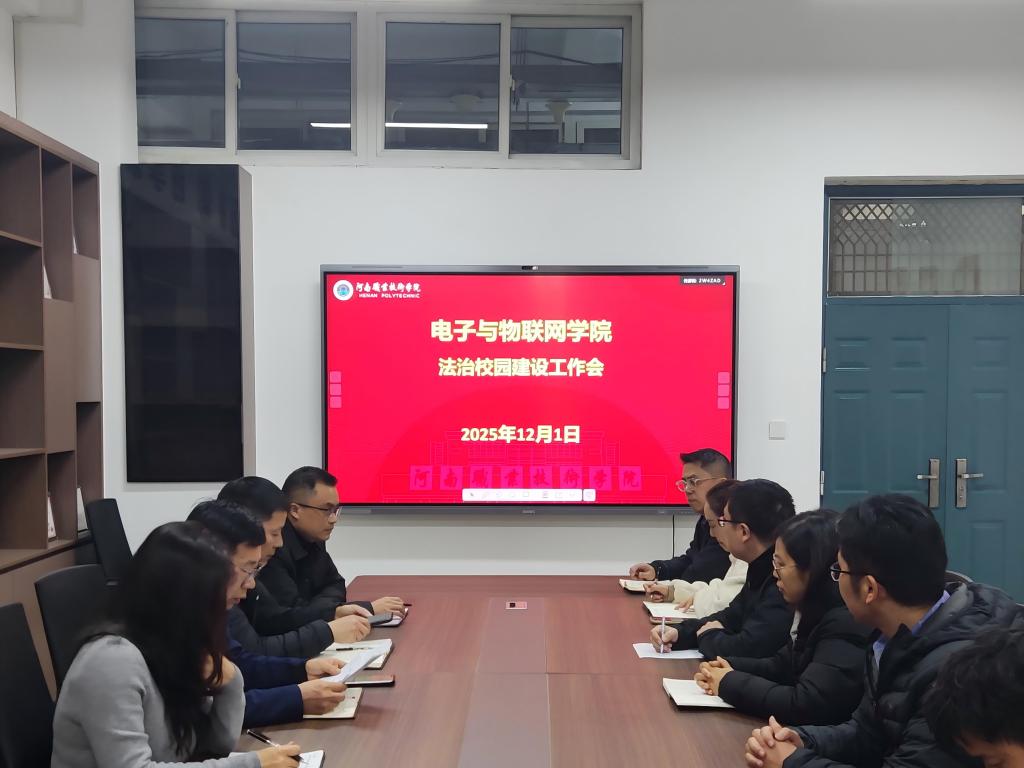 12月1日下午,学校电子与物联网学院在智行楼307室召开法治校园建设工作会议,传达学习学校2025年法治校园建设工作会议精神,全面落实法治校园建设工作部署。学院党总支书记谭营军主持会议,全体教职工参加会议。