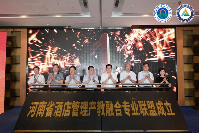 喜迎建党百年华诞,共商产教融合发展大计,6月26日上午,由河南省教育厅、河南省文化和旅游厅、河南省人力资源和社会保障厅指导,河南省旅游协会支持,我校牵头主办的河南省酒店管理产教融合专业联盟成立大会成功举办。河南省人力资源和社会保障厅党组成员、副厅长李海龙,河南省教育厅二级巡视员董玉民出席大会并致辞。省教育厅职成教处副处长张家成,世界旅游联盟副秘书长、浙江旅游职业学院王昆欣教授,省餐饮与住宿行业协会常务副会长张毅兵,省旅游协会秘书长滑蕾,以及省内51所院校和国内27家企业代表近200人参加大会。学校党委书记李桂贞致辞。学校院长梅乐堂主持了联盟成立和主题分享两个阶段的活动。
