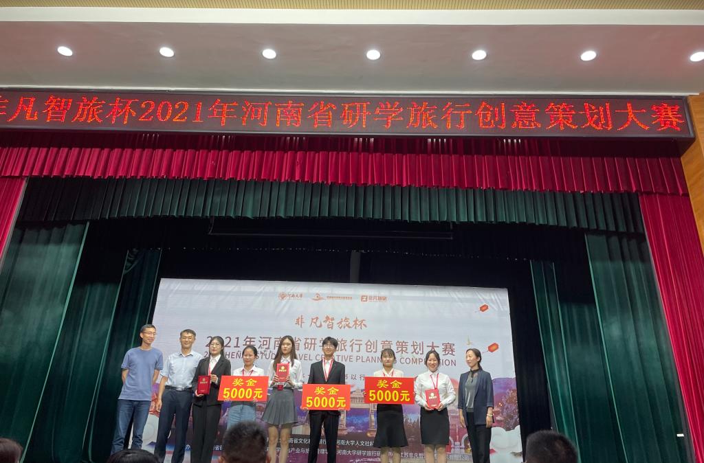 5月22日,非凡智旅杯·2021年河南省研学旅行创意策划大赛决赛在河南大学落下帷幕,我校旅游学院代表队在比赛中荣获一等奖及最佳展示奖。本次大赛由河南省文化和旅游厅、河南大学人文社科研究院指导,河南省研学旅行教育协会、河南大学文化产业与旅游管理学院、河南大学研学旅行研究中心和江苏非凡智旅信息技术有限公司共同主办,以“山水一程,携书以行”为主题,共有来自全省24所本专科院校的72支队伍参加了这次大赛。