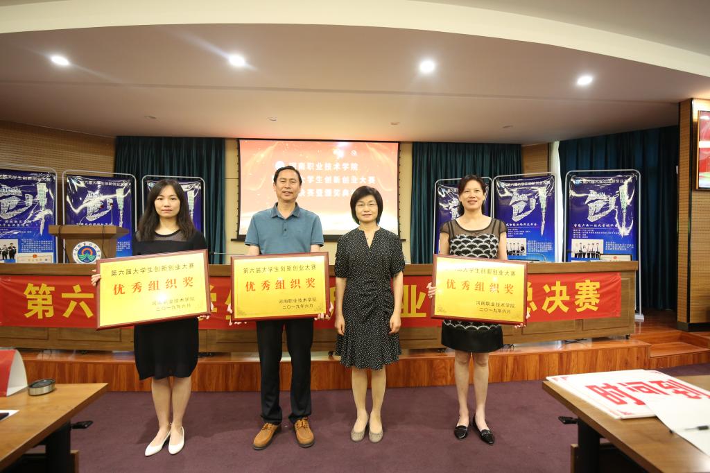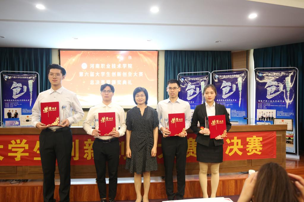 经过VCR展示、项目路演等环节激烈角逐,来自旅游学院张文博团队的《小文鲜生—生鲜原产地直供平台》、商学院曹英英团队的《智能无人驾驶作业车》、信息工程学院赵宇启团队的《非遗+电商短视频包装》、电气工程学院杨富强团队的《不用电的温控机器人》4个项目荣获一等奖,来自机电工程学院陈龙团队的《新思路家政》等6个项目荣获二等奖,来自汽车工程学院侯军拥团队的《智能产品一站式营销平台》等10个项目荣获三等奖;信息工程学院、商学院、旅游学院荣获优秀组织奖,王泽强等10位教师荣获优秀指导教师奖。