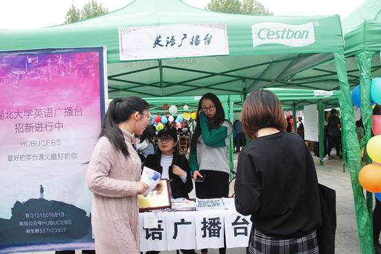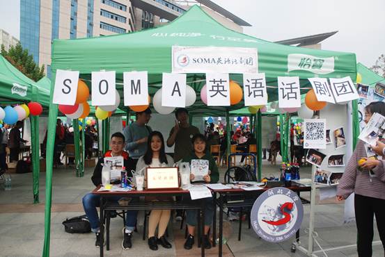 10月27日上午九点,湖北大学校本部的“百团大战”在图书馆前求索广场拉开帷幕,97个风格迥异的社团参加了此次的社团招新。其中包括外国语学院下属的四个社团——SOMA英语话剧团、樱花俱乐部、爱希美特法语协会和英语广播台。