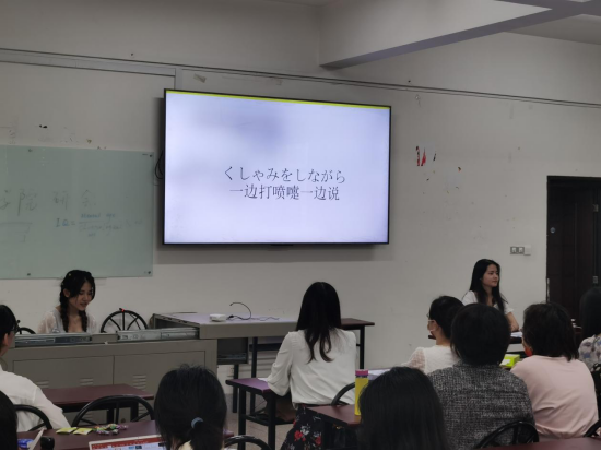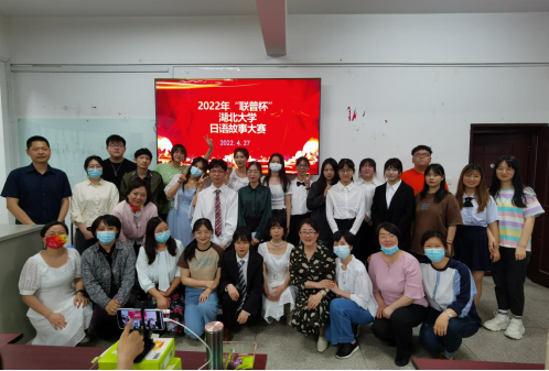 4月27日下午2:30,外国语学院日语系在逸夫人文楼A3002举行了2022年“联普杯”日语故事大赛。本次大赛由日语系的梁青、刘海燕、张静、黄凤琴、吕端、姜红、王辉、刘霞、唐芙蓉、张晶鑫十名老师及研究生李格、刘敏、胡卓颖共同担任评委。