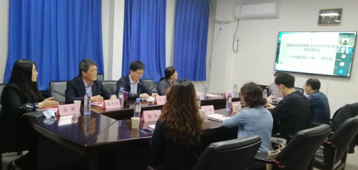5月20日下午,2021年度国家社会科学基金中华学术外译项目——《中国哲学史十讲》(英文版)开题报告会在逸夫人文楼A4011会议室举行。武汉大学中国传统文化研究中心张杰教授、武汉科技大学外籍专家(美国)Reilley、湖北大学杨元刚教授应邀担任评审专家,湖北大学人文社会科学研究院副院长王雄、湖北大学外国语学院院长陶涛教授、杨小彬教授团队等20余人参加会议。会议采取线上与线下相结合的方式,由湖北大学外国语学院副院长吕奇教授主持。