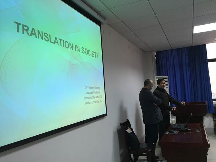 2017年3月24日上午10:00-12:00,英国杜伦大学现代语言与文化学院Sergey Tyulenev教授应邀在逸夫人文楼A2014学术报告厅举行一场题为Translation in society的精彩讲座,外国语学院吕奇老师担任主持,外国语学院MTI全体和部分翻译专业的本科生参加了这次讲座。英国杜伦大学具有悠久的办学历史,是英国排名前五名的知名高校,其翻译研究团队在中国典籍翻译、社会翻译学研究、口译的神经认知科学研究取得了丰盛的成果。