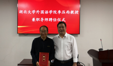 5月12日,湖北大学外国语学院在逸夫人文楼A2014隆重举行仪式,聘任陆军炮兵防空兵学院高级译审、全军军事翻译委员会专家委员季压西教授为外国语学院兼职导师。聘任仪式由外国语学院殷燕教授主持,学院党委书记刘建伟,副院长吕奇、蔡蕾,以及广大师生共60余人参加聘任仪式。