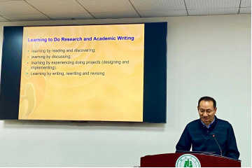 11月13日,张文忠教授围绕“英语阅读教学理念与设计”作学术讲座。张教授结合自身实践,对阅读教育目标进行再思考,强调以阅读作为“入口”,阅读应用作为“出口”的良性循环。他指出,步骤明确、任务清晰、环环相扣的阅读教学模式是指导学习者理解文本的操作性模式,并列举REAP、ACTIVE等六大阅读教学实施模式以供参考。最后,张教授提出了HAVE(四“有”进阶)阅读教学主张和几点教学建议,助力赋权增能型人才培养。