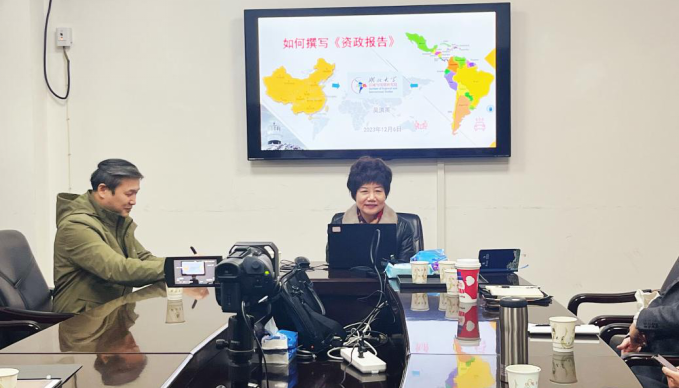 12月6日,湖北大学区域与国别研究院院长吴洪英教授应邀莅临外国语学院,为学院师生进行了主题为《如何撰写资政报告》的讲座。本次讲座由外国语学院副院长吕奇教授主持,外国语学院部分师生,以及学校其他院系的部分师生参加了本次学术活动。