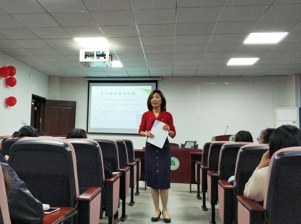 2019年10月30日晚上七点,湖北大学国际教育学院副院长、党委副书记胡晓燕老师在逸夫人文楼A2014进行了题为“让心放轻松”的研究生心理适应性讲座,外国语学院全体研究生参加了讲座。