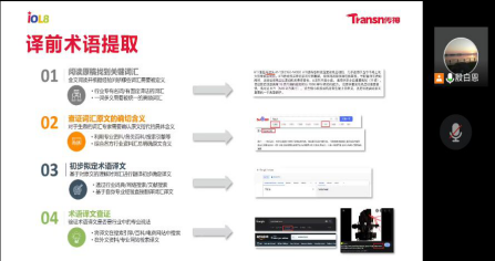 讲座第三部分,殷白恩老师详细讲解了译前术语提取的四大步骤,分别为阅读原稿找到关键词汇、查证词汇原文的确切含义、初步拟定术语译文、术语译文查证。术语影响译文准确性,译者大都学语言,不能够理解各领域的关键术语,人工提取术语时,比如马达头,每个字全都认识,却不知道具体意思。同样对于机器翻译也较难。比如,兰州牛肉拉面,机器可能会识别为兰州、牛肉和拉面三个词。因此,需要提前定义术语,这使译文更加准确和译后工作更加高效,特别是在大规模协同工作场景下,保证最终译文质量。。人工术语提取缺点在于短时间内难以通读全文,效率低、容易遗漏且个体差异性极大。而比如,“夏天衣服能穿多少穿多少”和“冬天衣服能穿多少穿多少”,这两句机器翻译会有很大障碍。AI提取术语能够快速提取全篇关键词汇,统计词频并匹配历史术语库译文,减少重复劳动的同时,随着数据积累不断提升自动提取的精准度。