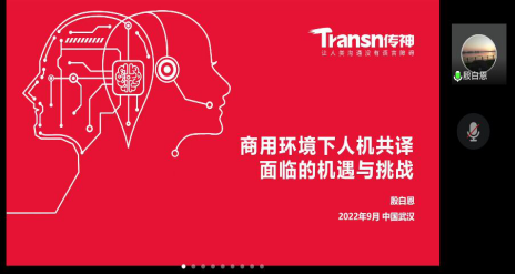 9月6日,传神公司殷白恩老师线上讲学,为学院2022级翻译专业新生带来了一场以人机共译在商用环境下的应用为主题的讲座。本次讲座通过腾讯会议举行,由外国语学院殷燕教授主持。
