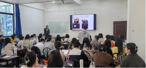 10月11日,湖北大学外国语学院邀请听世界外语培训学校、听世界翻译有限公司联合创始人姜涛老师,为2022级外院翻译硕士新生进行口笔译行业前沿讲座。本次讲座的题目是“口译工作‘举轻若重’与‘举重若轻’之我见”。讲座在逸夫楼A座1010举行,由殷燕教授主持。
