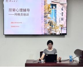 会议伊始,三位心理委员分享了参加学校心理培训讲座的内容,从朋辈心理辅导、网格员的基本素养、常见心理健康问题的识别等方面对网格员进行培训。