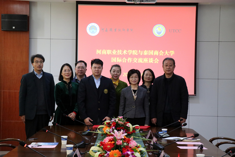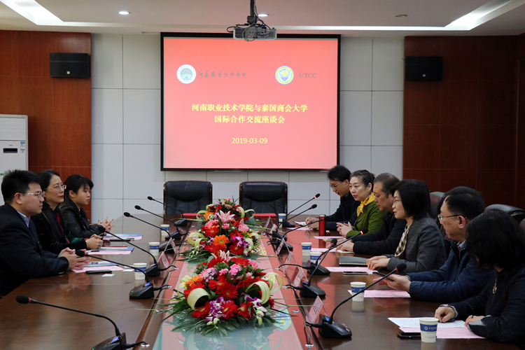 3月9日上午,泰国商会大学(UTCC)校长助理徐武林博士偕同中泰生命医学研究中心执行主任戴安娜博士到访我校,就国际联合办学合作与我校签署合作备忘录。学校院长李桂贞、副院长王皓出席会议。旅游学院、信息工程学院、商学院及合作交流处相关负责人参加会议。
