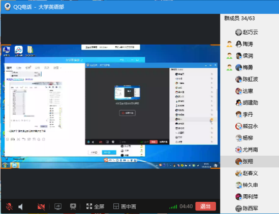 为总结上一阶段的教学经验,进一步做好下一阶段的教学工作,3月24日晚上7:00,大学英语部采用“QQ电话会议+屏幕分享”的方式,召开了第一次线上全体教师大会,老师们虽身处省内外、海内外,50位教师均按时连线入会。大会由杨小彬教授主持,分为三个议题:一、教师个案示范和分享;二、各课程组总结探讨;三、开展网络口语训练和线上竞赛工作。会议历时3个小时,持续到晚上10:00结束,期间,5位教师代表、7位课程负责人做了会议研讨分享。