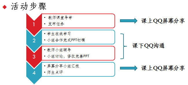 大学英语部副主任王婷老师以“‘云互动’环境下的口语输出活动”为主题,交流了她开展线上教学的一些尝试。王老师把实施过程分四步走:1、教师通过QQ投票导出话题,利用QQ屏幕分享功能实施课堂导学,发布口语输出任务;2、学生通过小组合作完成PPT初稿;3、教师进行小组辅导,学生进行小组讨论,根据教师反馈修改PPT;4、学生通过QQ屏幕分享功能做小组汇报。王老师认为,要保证中间两步的产出质量,教师的参与和引导是必须的。教师要针对学生产出过程中出现或可能出现的困难和错误,提供适当的输出帮助。她提出,与传统的线下教学相同,如何设计出能够实现教学目标的教学任务,依然是开展线上课程应该关注的重点。