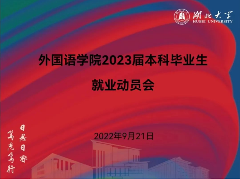 为做好2023届毕业生就业工作,帮助毕业生了解就业形势,强化就业意识,提升就业能力,9月21日下午14时30分,外国语学院在学校3号教学楼201教室召开本科毕业生就业动员会。学院党委副书记占婧,学工办主任、团委书记向杨,辅导员肖文杰,日语系副主任、2022届毕业班班主任刘海燕,2023届毕业班班主任,法语专业2021届毕业生曹一凡,翻译专业2021届毕业生朱卓,学院2023届本科毕业生以及2020级部分专业学生参会。会议还邀请了优秀企业深圳市好利航国际货运代理有限公司总经理樊永锋、武汉分公司经理陶靓、人力资源主管李卡,会议由占婧主持。