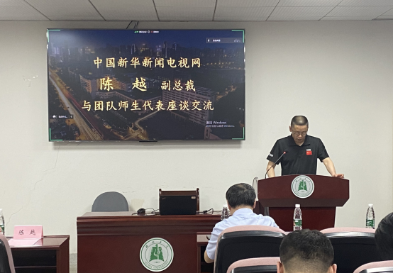 陶涛院长代表学院向中国新华新闻电视网陈总一行莅临指导、向各兄弟高校和本校全体参会师生的到来表示热烈欢迎和诚挚感谢,并分别介绍了学院的基本情况以及学院翻译团队近年来服务国家战略、地方经济发展尤其是参与重大国际体育赛事语言服务、新闻服务和国际传播的相关事迹。