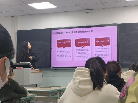 各班根据专业特色积极开展讨论,英语(师范类)专业班级以“英语师范生如何在教育强国建设中发挥作用”为主线,通过案例分析(如“双减”政策下的英语教学创新)和角色模拟(数字化课堂设计),强化理论与实践结合。同学们采用小组研讨模式,形成共识与建议,提出增设“智能教育技术应用”“跨文化教学实践”等课程,适应教育数字化转型, 加强师范技能实训课时,增加微格教学、教育戏剧等互动形式。