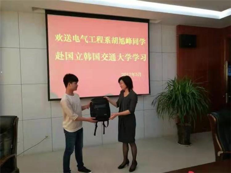 “当时的自己很不自信,经常想一辈子也就这样了。从来没考虑过出国,更没想到有一天会去韩国,我的母校河南职业技术学院给了我人生最重要的机会。”当机会来临时,他有很长一段时间的犹豫,语言不通,国外的一切都是未知,辅导员了解到他的真实想法后,鼓励他大胆突破自己,挑战自己,抓住人生难得的机会,实现个人成长的跨越式发展。辅导员详细客观的帮他分析了去韩国读书的优势,尤其是“掌握高水平技能的同时,还能拿到学历、收获第二语言技能,参与韩国知名企业实习实践,增长人生阅历”等优势让胡旭峰心动不已。“有机会要珍惜!”父亲再一次勉励他,让他大胆向前,不要有后顾之忧。作为学校首批赴韩留学生之一,2017年5月16日,学校行政楼A303会议室为他们举行了欢送会,时任学校校长、现任党委书记李桂贞出席会议并表达祝福和寄语,希望他们努力学习专业知识、历练专业技能,不负青春和美好机遇,为学校乃至河南做好形象代言,成为两校友谊的桥梁和使者。