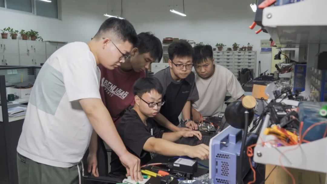 目前市面北斗接收机主要分为芯片级、模块级和设备级三大类型产品,分别适用于不同的应用场景,但优缺点也非常明显。芯片级体积小、价格低、但精度差,适用于物联网、个人终端等民用设备,比如我们的手机里面的就是芯片级北斗接收机;大型设备级接收机精度高,但体积大、价格高,适用于工业、军工等领域;在通信、信号处理、软件无线电等领域所需要的模块级接收机,目前国内精度低,国外价格又很昂贵。有没有一款体积小、精度高、稳定性好、性价比高、满足多种领域需求的模块及接收机呢?2023年4月份,团队开始正式着手研发这个项目。因北斗领域比较大,涉及面广,成员基础知识薄弱,经常觉得难以下手。“基础知识薄弱,我们就去科技类企业学习,工作室里找老师恶补,软件设计能力不足,通过算法和编程挑战来提升。”