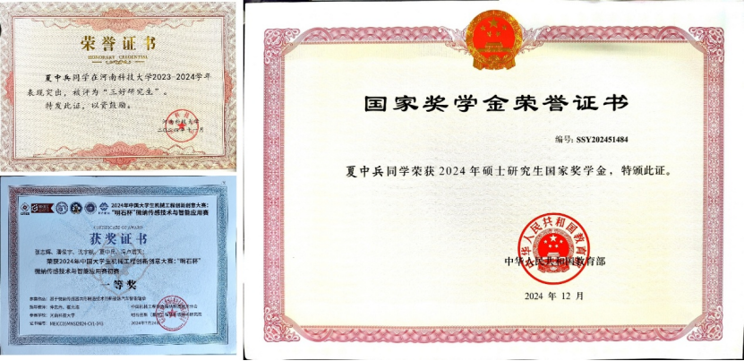 深夜的灯光,见证了他的执着。发表的论文、申请的发明专利,记录了他的突破。2024年,他荣获硕士国家奖学金,并在中国大学生机械工程创新创意大赛中斩获国家级一等奖。